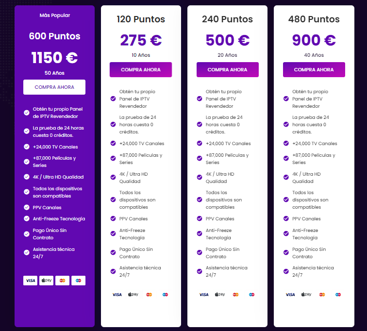 Una vez que se convierta en revendedor, recibirá acceso a nuestro panel intuitivo de IPTV. Esta herramienta le permite crear y administrar suscripciones de IPTV sin esfuerzo. Puede ofrecer varios planes de suscripción a sus clientes, incluidos: